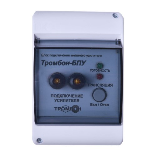 Блок подключения усилителя Тромбон БПУ разработан для расширения возможностей Системы оповещения и управления эвакуацией (СОУЭ) торговой марки Тромбон в области речевого вещания и музыкальной трансляции.